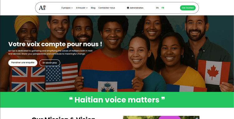 Site web pour une société de sondage autour de la diaspora haïtienne basée aux états unis